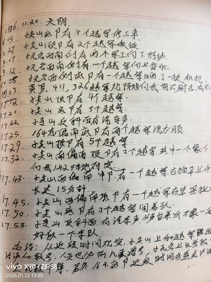 我的战友熊彦杰(甘肃省兰州市,47军139师417团,二等功,当今在中铁二十一局)在战场上的像片和日记。