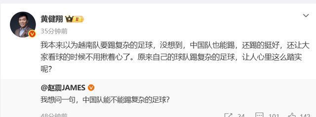 国内足球名嘴黄健翔示意,他以为越南队要踢更复杂的足球,没念念到中国队也能踢,何况还弘扬更好,让东说念主看球的时候毋庸揪心了,正本我方的球队踢复杂的足球,让东说念主心里这样牢固!其实这场比赛,除了晋级决赛让东说念主欣忭,幸运彩app官方最新版下载国足球员的技能合作也超出了大家的预期,年青球员越过太大了!