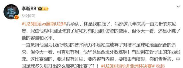 毫无疑问,这场比赛国足的最大元勋,除了在场上拼搏的球员以外,即是主涵养安东尼奥,他的变阵太告成了!让王钰栋、拜合拉木打替补,镌汰声势高度来跟上越南的速率,让敌手难以踢出我方的节律,国足最初进球后,越南队压力陡增,球员不睬智还吃到红牌,透顶崩盘!每一步仿佛齐在安东尼奥的缱绻当中,是以主帅关于球队的要紧性显而易见!