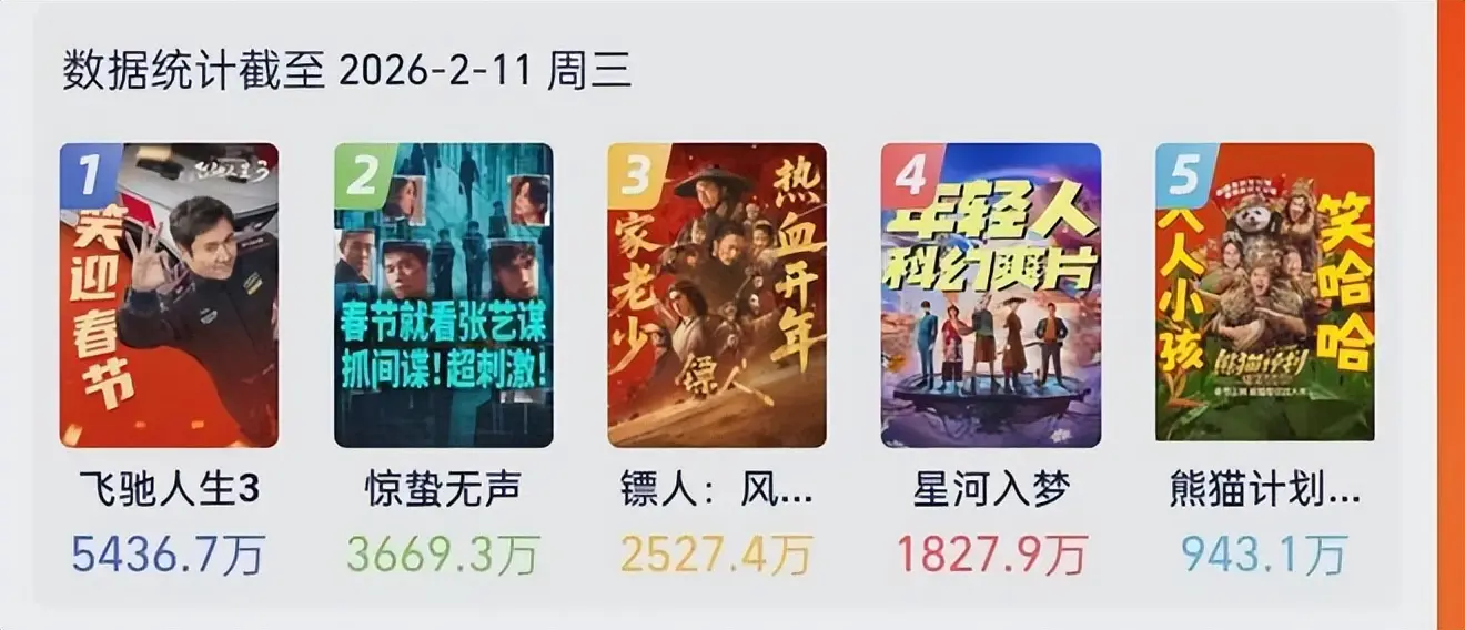 2026 年的春节档预售,从一开动就分出了上下。扬弃 2 月 12 日,春节档新片预售总票房冲破 1.7 亿,大年月朔单日预售更是超 1 亿,看似一派火热,实则里面差距悬殊。沈腾主演的《驰骋东谈主生 3》以 6400 万预售票房一骑绝尘,而张艺谋联手易烊千玺、朱一龙打造的《惊蛰无声》,虽以 4100 万票房稳居第二,却连前者的七成不到,和导演口中 “特出《满江红》” 的概念相去甚远。