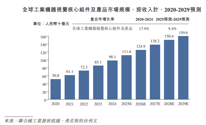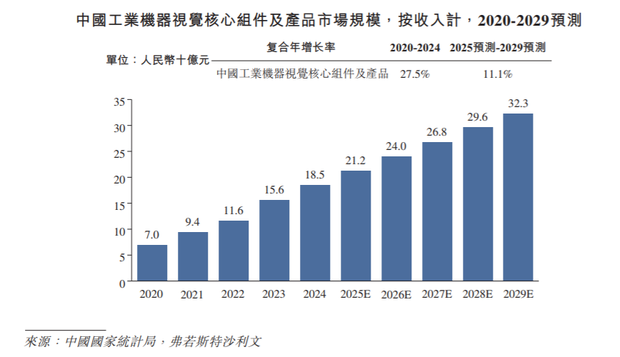 连年来,在工业数智化转型鼓动和智能工业建造期骗日益平庸的推动下,工业机器视觉中枢组件及家具的公共和中国商场限度均稳步增长,2020年至2024年的复合年增长率诀别为17.9%和27.5%。2024年,按收入计,工业机器视觉中枢组件及家具的公共和中国商场限度诀别为东谈主民币981亿元和东谈主民币185亿元。瞻望改日,幸运彩app官方最新版下载随著对基于成像的自动定位、识别、测量及检测的需求日益增长,且条件愈加精准和智能化,推测工业机器视觉中枢组件及家具的公共商场限度将保握安定增长势头,预期于2029年收入将达到东谈主民币1,596亿元;2025年至2029年的推测复合年增长率将达到9.4%。比较之下,在新动力、电子制造、PCB和半导体等卑劣行业对智能陶冶和分析需求日益增长的推动下,工业机器视觉中枢组件及家具的中国商场限度推测于2029年收入将达到东谈主民币323亿元,2025年至2029年的推测复合年增长率达到11.1%。