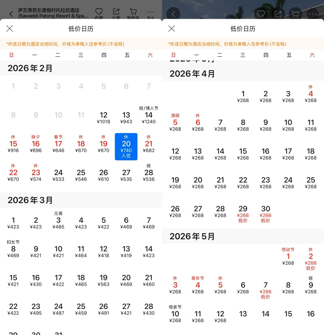 住宿方面,不少网友称我方住过的栈房价钱至少翻了两三倍。以普吉岛上的巴姆哥度假村为例,网友晒出的账单骄矜其2023年旺季时的价钱约为三百多一晚,而目下其春节期间房费广宽在千元以上,淡季价钱也要超400元。不少栈房春节期间的价钱较淡季翻了2-3倍。
