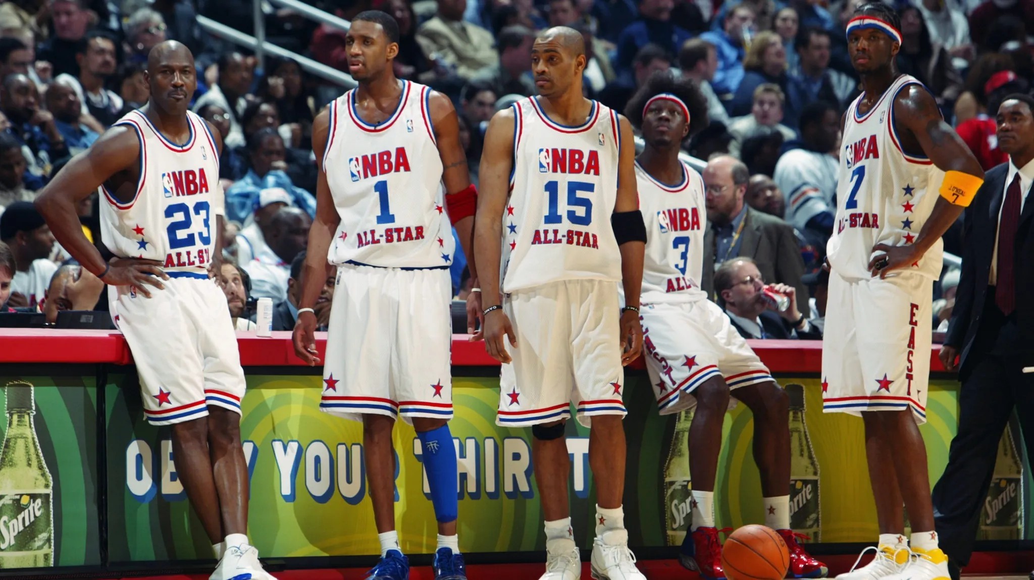 乔丹的死怨家伊塞亚-托马斯苦求一位东部首发球员让出我方的首发位置,好让乔丹首发。你看,还有你的北卡罗来纳大学学友,文斯-卡特,他把首发位置让给了另一位北卡罗来纳大学的学友,最终乔丹首发出场。真实令东谈主叹为不雅止。”