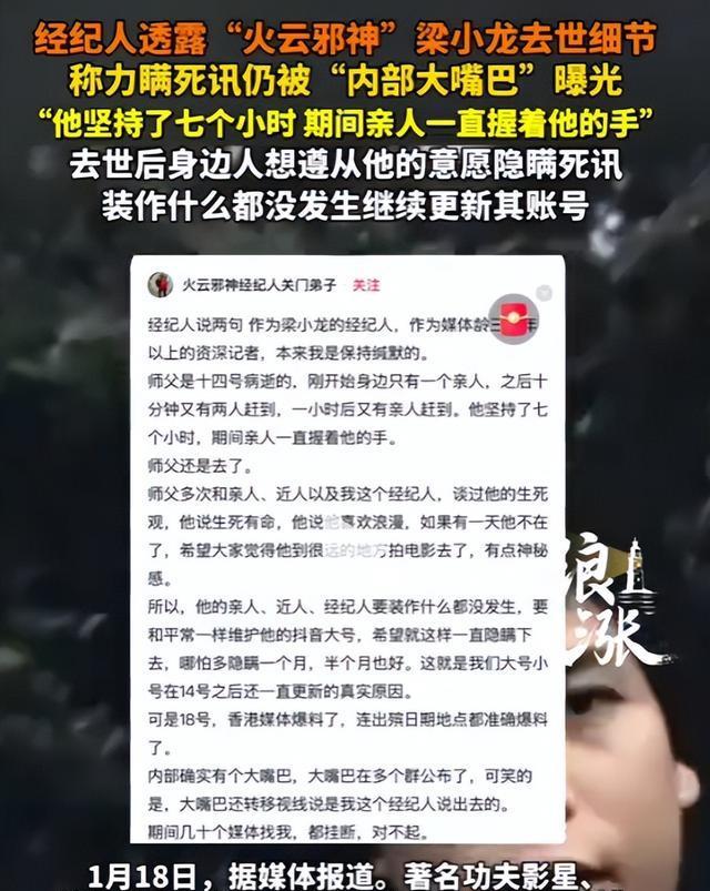 功夫巨星梁小龙覆没,牙东谈主称力瞒死讯仍被曝光---2026-01-19---当代快报