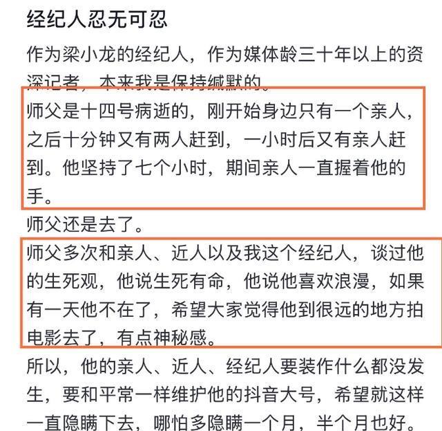 除了梁小龙的确实死因一直被外界揣摸除外,牙东谈主也被东谈主诟病,称掩饰死讯的原因,就是念念借机敛财,榨干终末的运用价值......