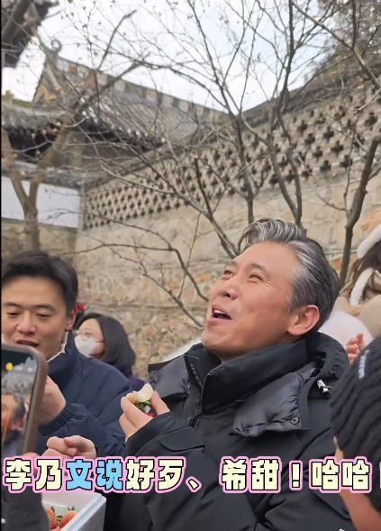 说真话,咫尺还有演员能让你看着他发际线后移皆以为得志的,真未几了。李乃文最近在大孤山被东说念主偶遇,穿个泛泛羽绒服,手里合手着根棒棒糖,边走边舔,笑起来眼角一堆褶,少许歪邪着。粉丝递草莓,他接过来就分着吃,有东说念主开打趣说“您这头发咋整的”,他也没恼,反而笑出声,边走边说:“掉就掉了呗,又不是演光头变装还得戴头套。”