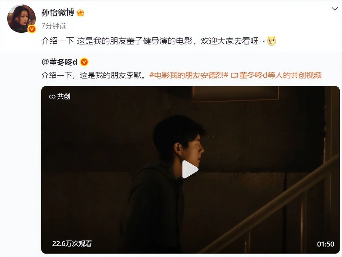 “先容一下,这是我的一又友董子健导演的电影,宽饶宇宙去看呀。”