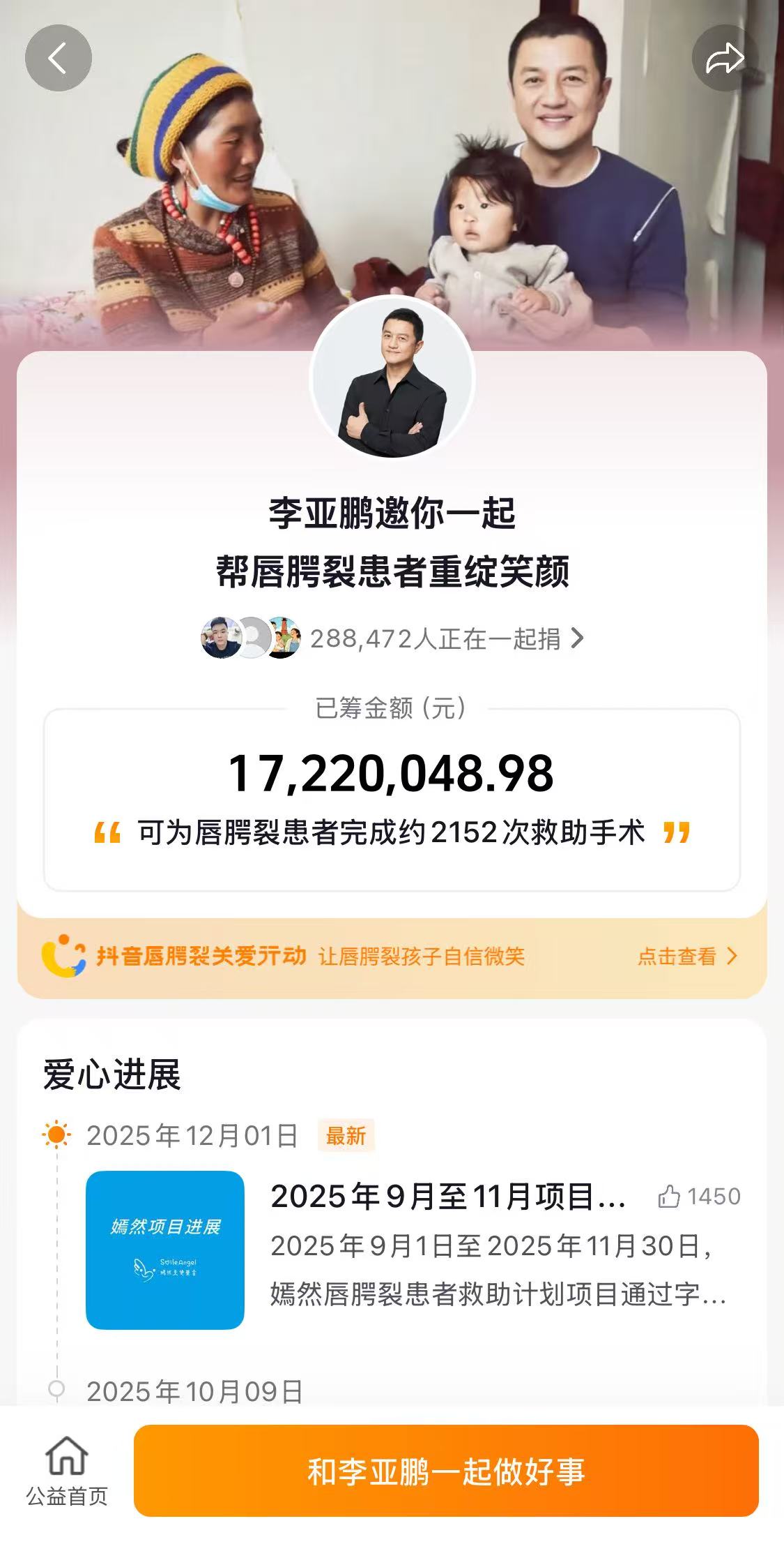 1月17日下昼,李亚鹏发视频回话称,“昔时的两天多时辰,有逾越18万名捐赠者,估计为嫣然天神基金捐赠了900万元傍边的善款。”